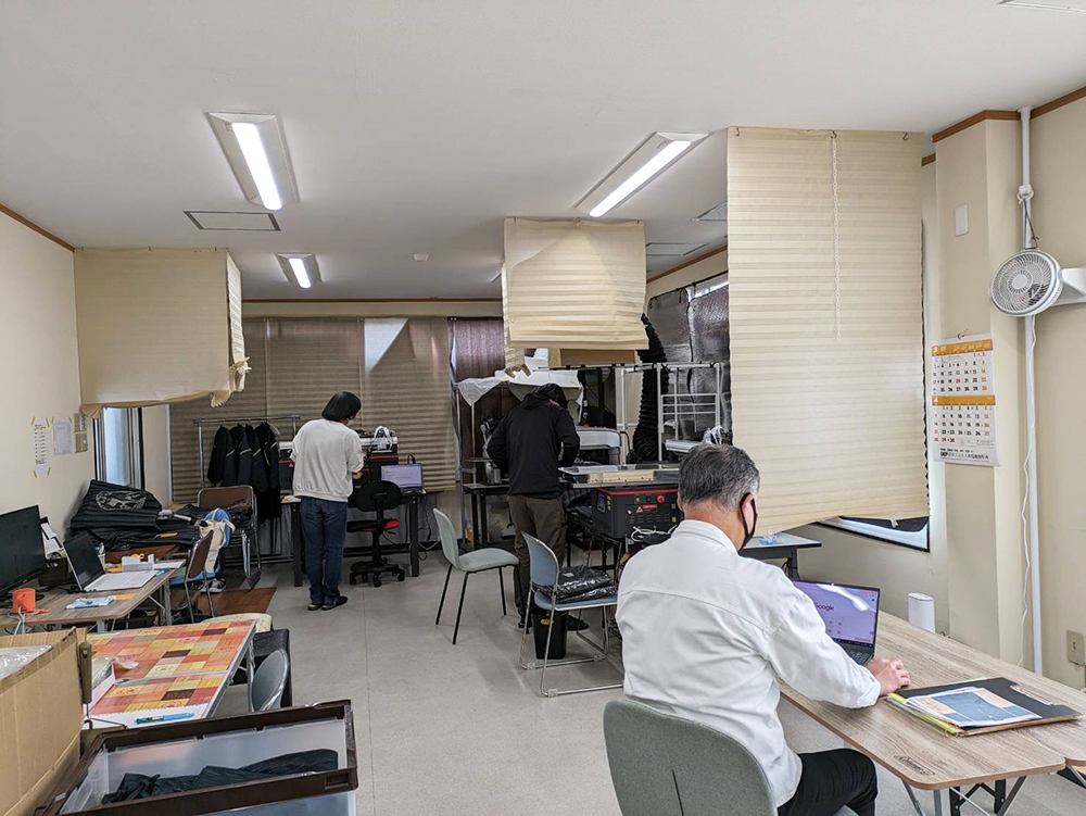 同じ建物内にインターネット通販の会社の作業場があります。ここでは、Tシャツに柄をプリントしたり商品を畳んで出荷したり、パソコン仕事も行います。